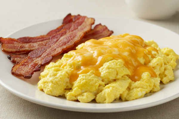 A breakfast dish of freshly cooked eggs topped with melted cheese…