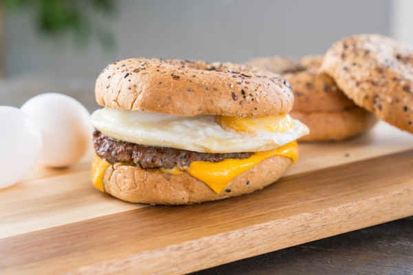 Savory sausages, with egg and cheese stuffed in choice of bread.