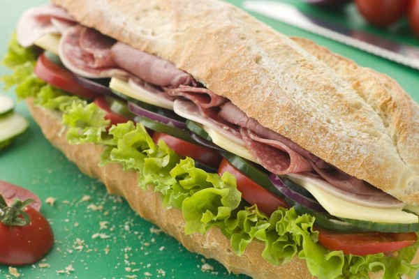 A sandwich with cream cheese, lox, onion, tomato, and capers.