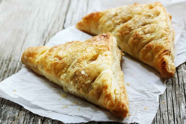 An apple turnover is a flaky and buttery puff pastry, filled with a sweet and soft, cooked apple filling.